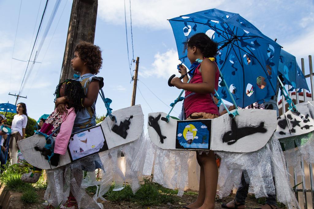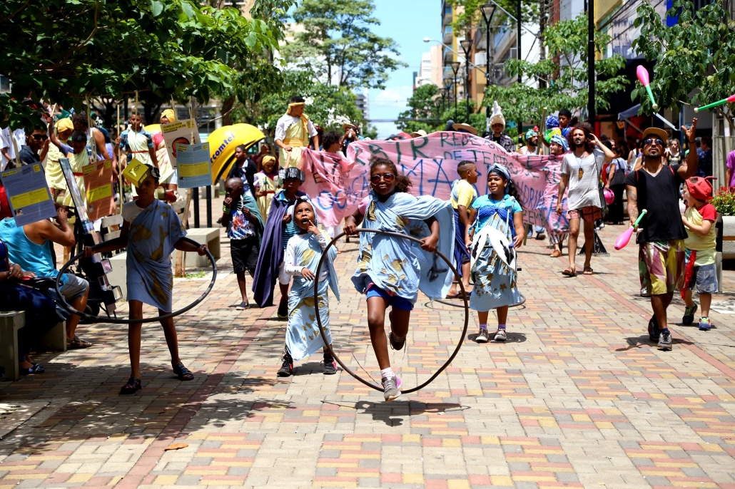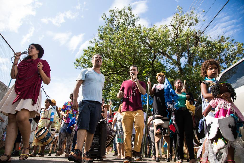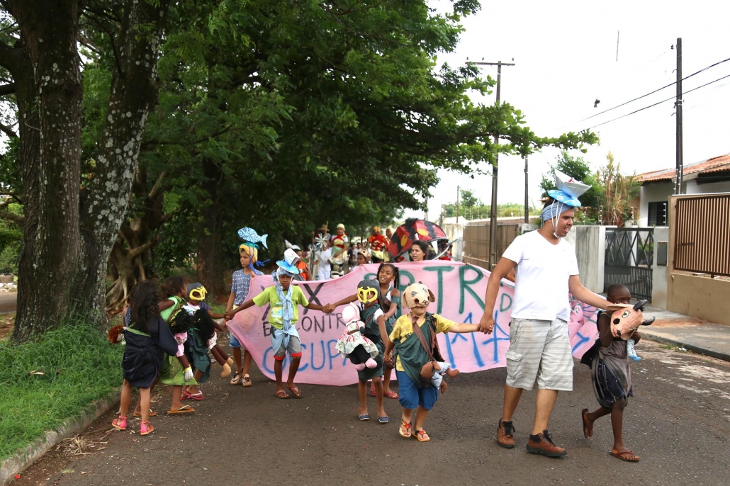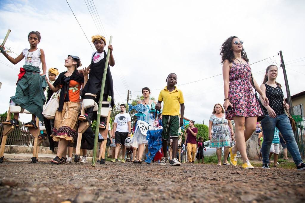 Ao final de dois meses de atividades, os grupos formados em cada comunidade puderam se juntar em um grande cortejo artístico, que circulou pelos seis bairros e centro da cidade.