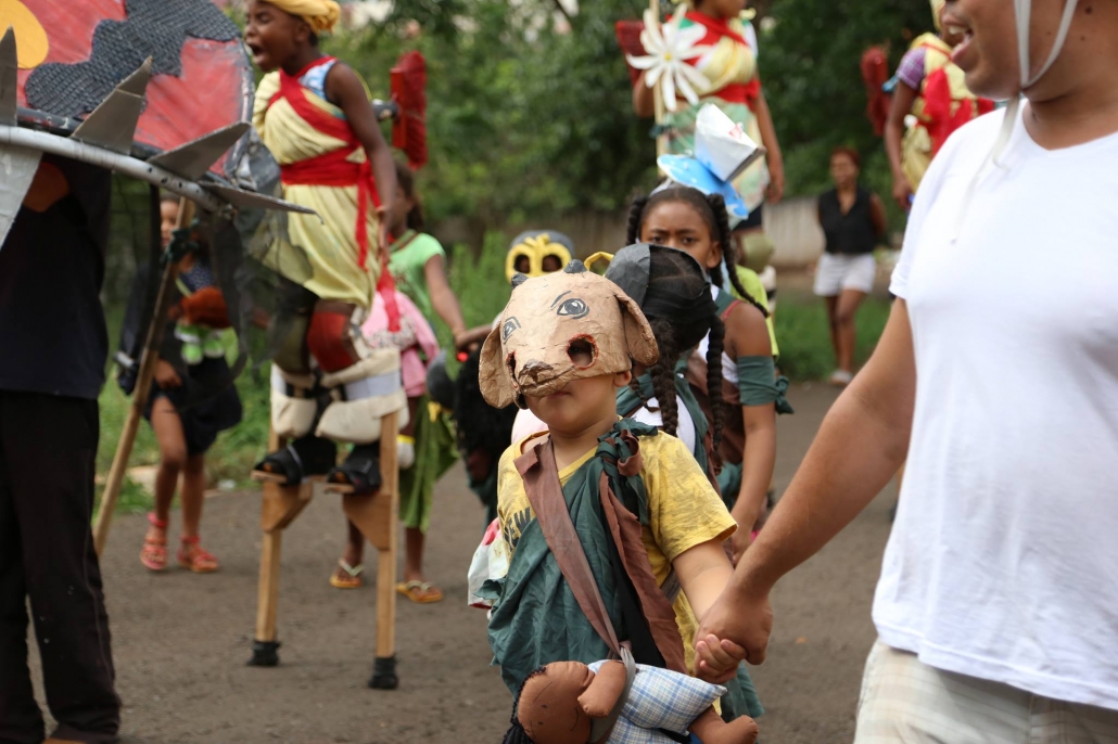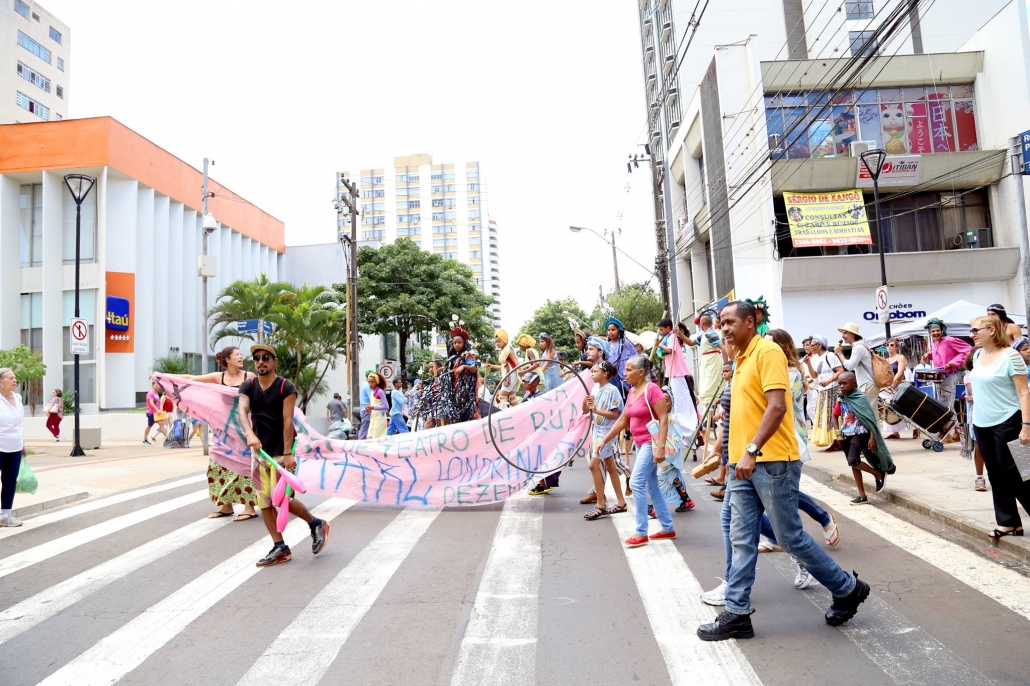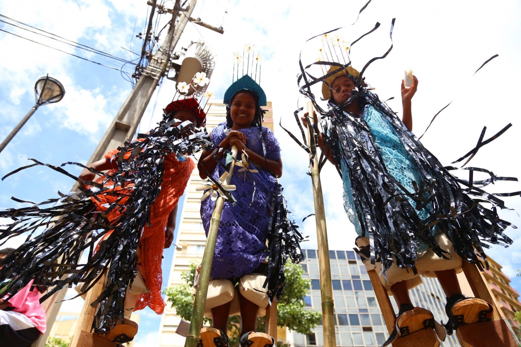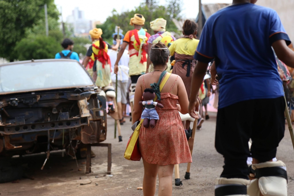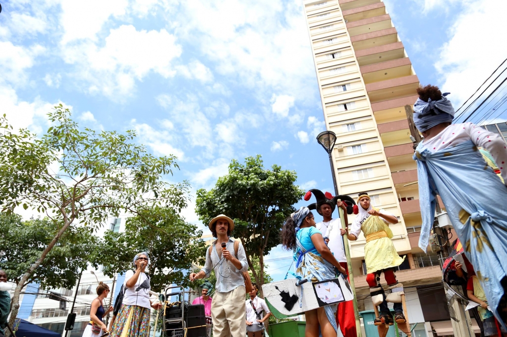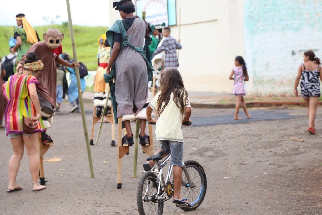 Ao final de dois meses de atividades, os grupos formados em cada comunidade puderam se juntar em um grande cortejo artístico, que circulou pelos seis bairros e centro da cidade.